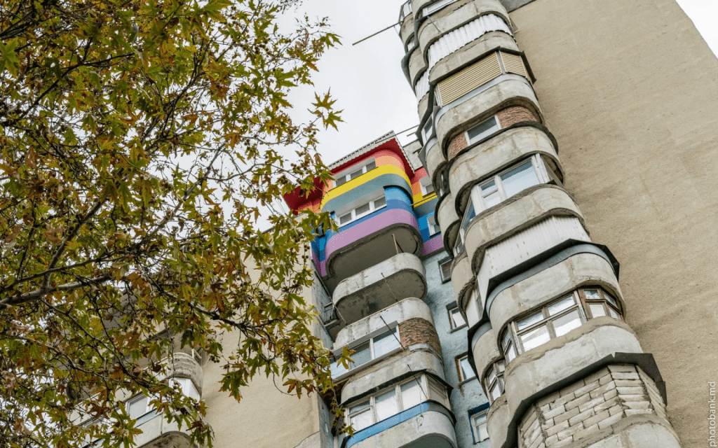 Na budynku GENDERDOC wisi tęczowa flaga – jedyna w Mołdawii. „Nie tylko. To jest jedyna tęcza w całym regionie geopolitycznym”, twierdzi Danilova. „Parę razy ją kradli. Mamy nawet takie śmieszne nagranie z monitoringu, jak jeden gość usiłuje ją zdjąć, ale umie się tak wysoko wspiąć. Wdrapuje się i spada, wdrapuje się i spada – i tak w kółko. Uparty człowiek”.